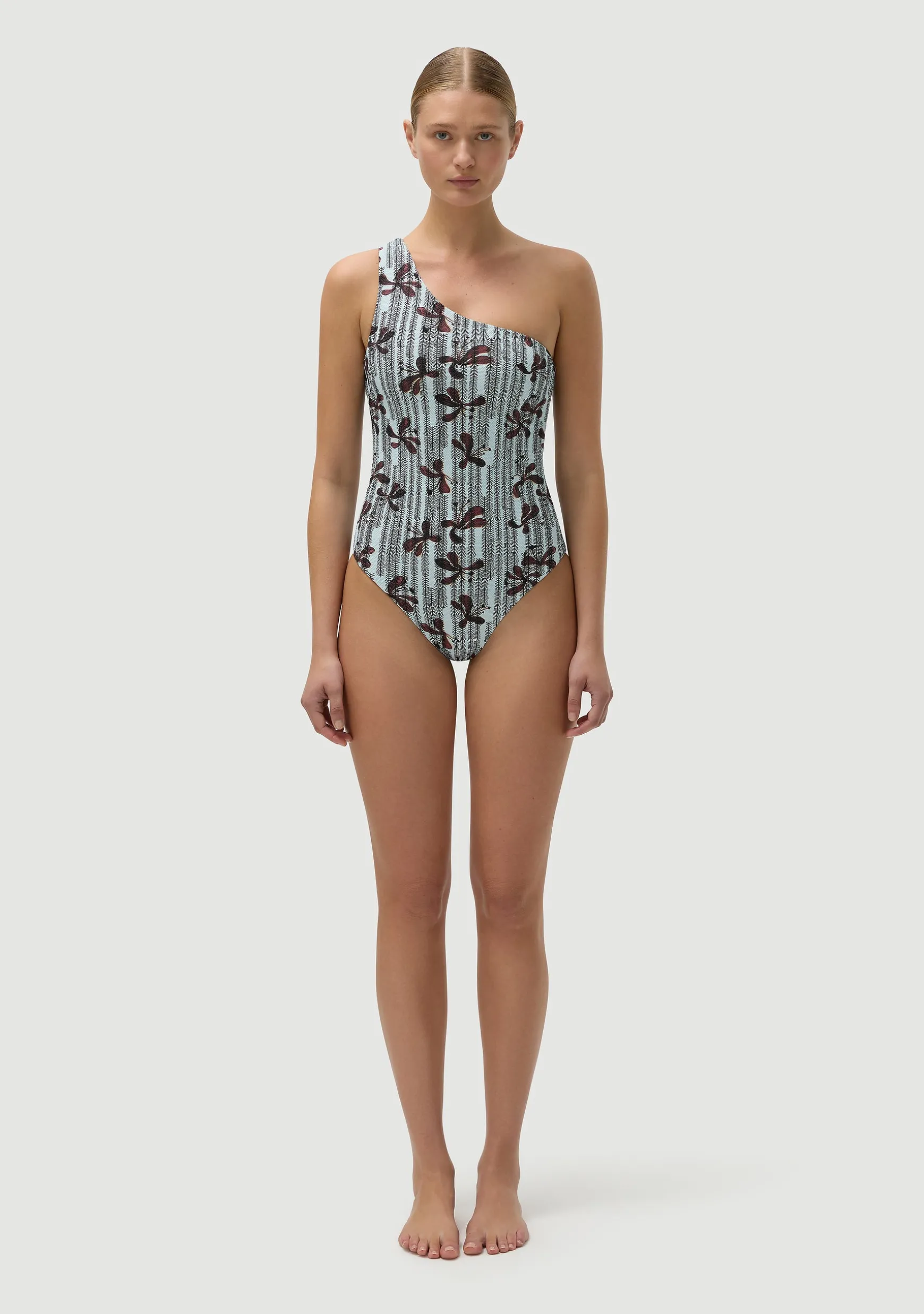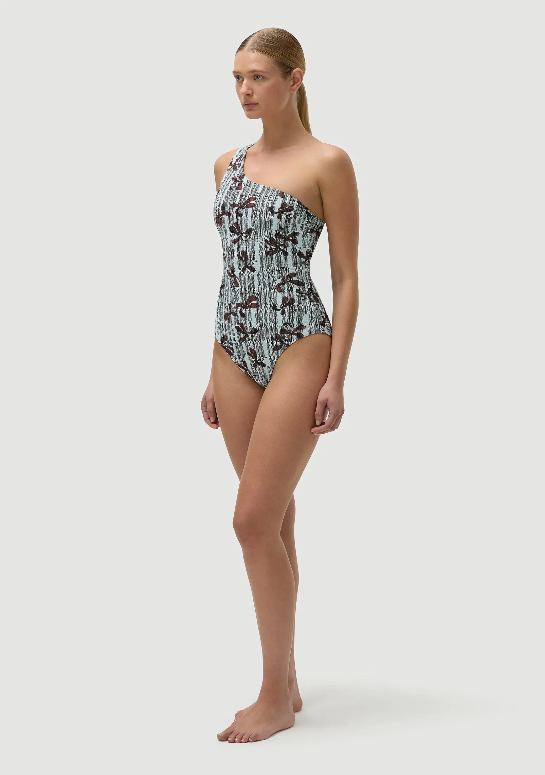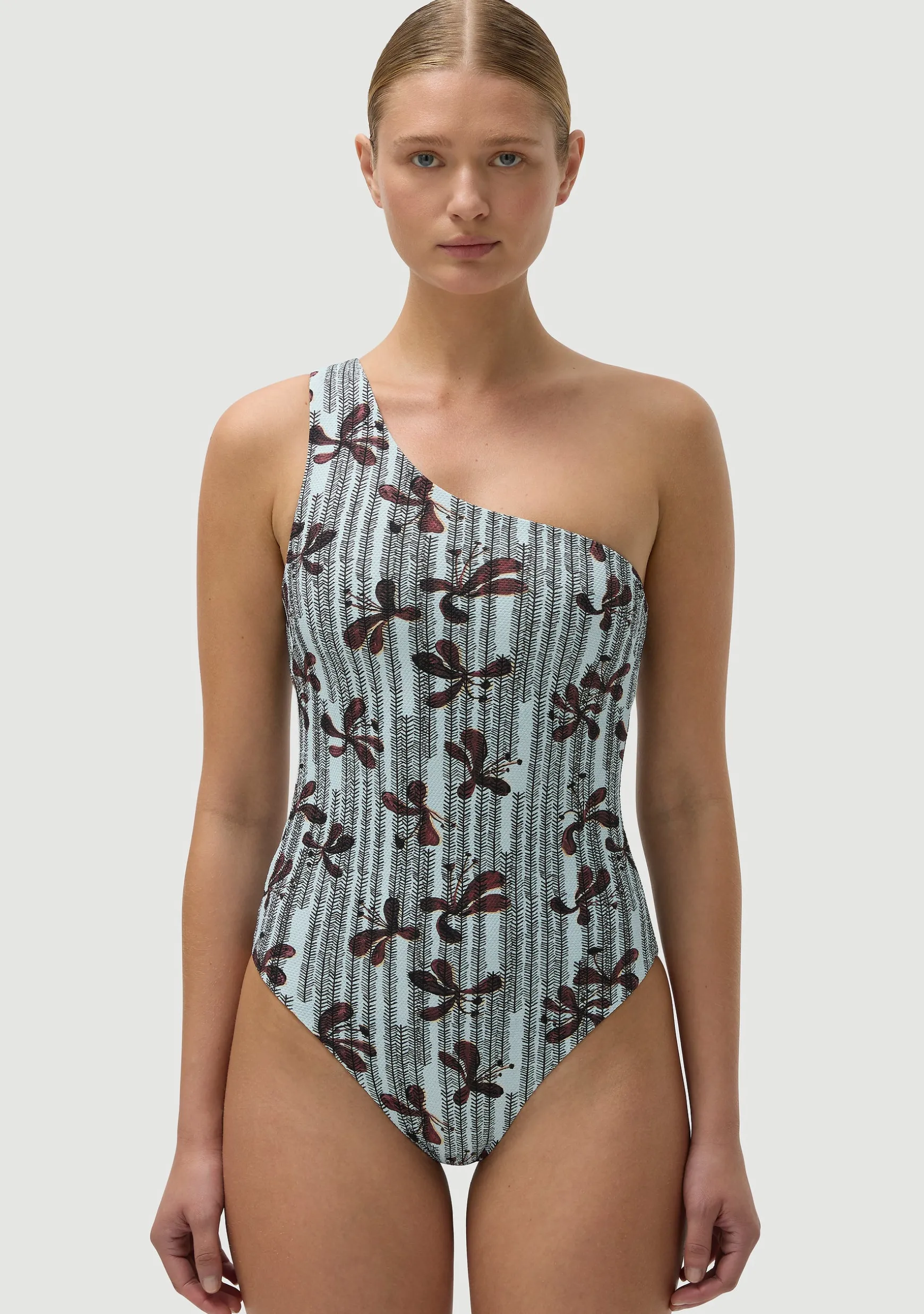 A classic asymmetrical one-piece. Conservative bottom with a mid-cut leg.