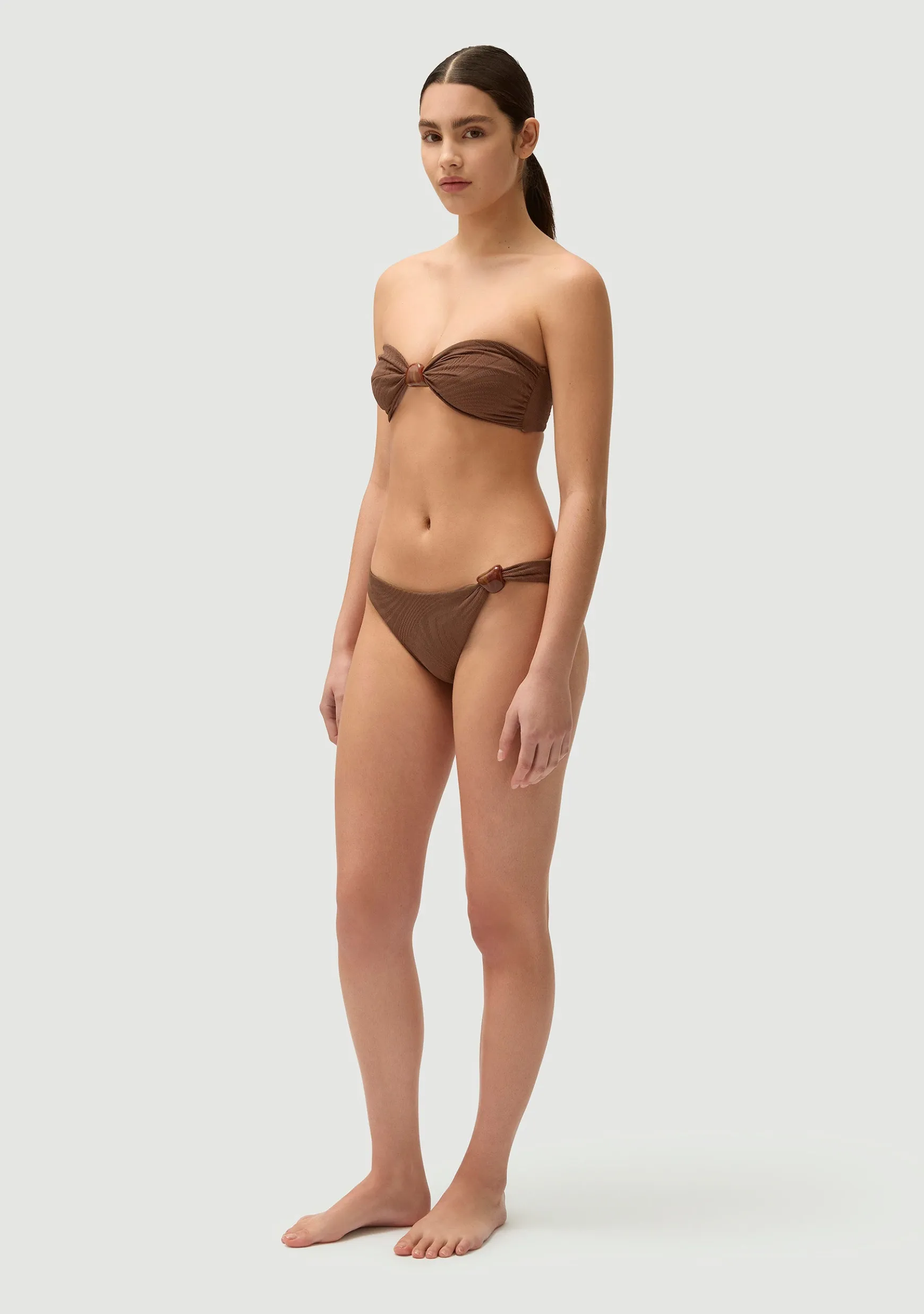 Classic bikini bottom with a single-sided Italian plexiglass bead.