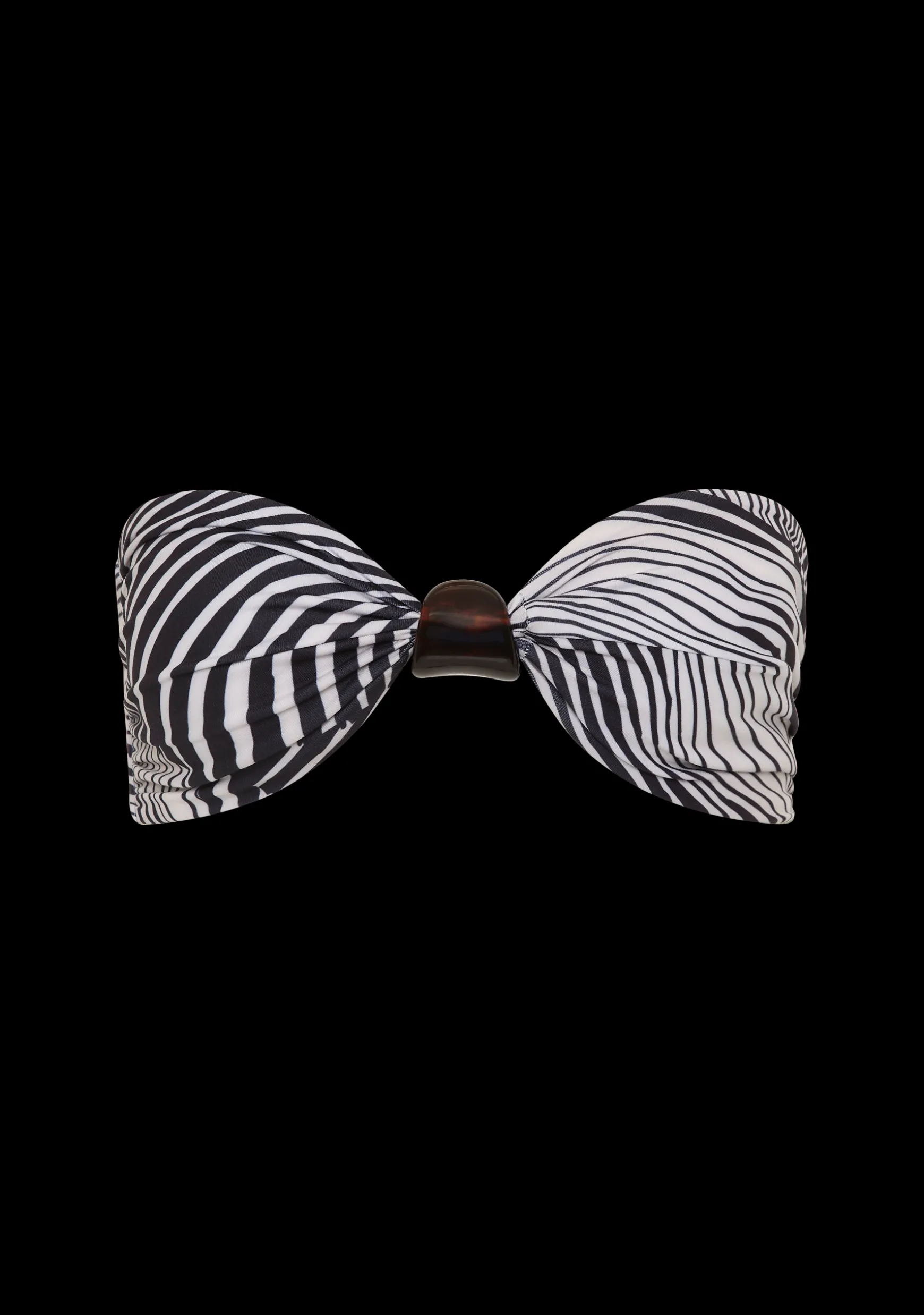 Bandeau top with a chunky Italian plexiglass bead. Clasp at back, Boned side seams.