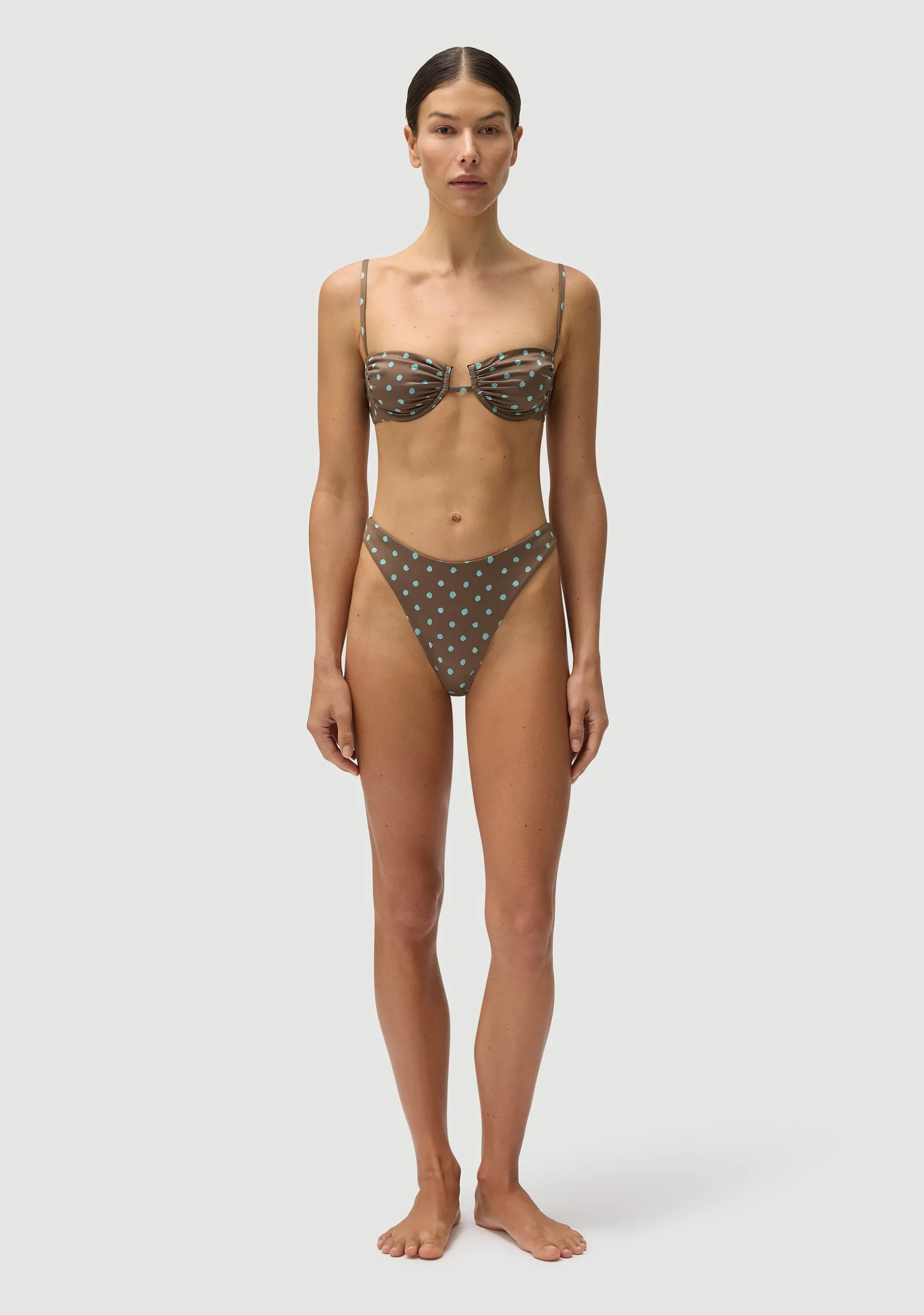 An underwired rouched bralette. Adjustable shoulder straps and back clasp.