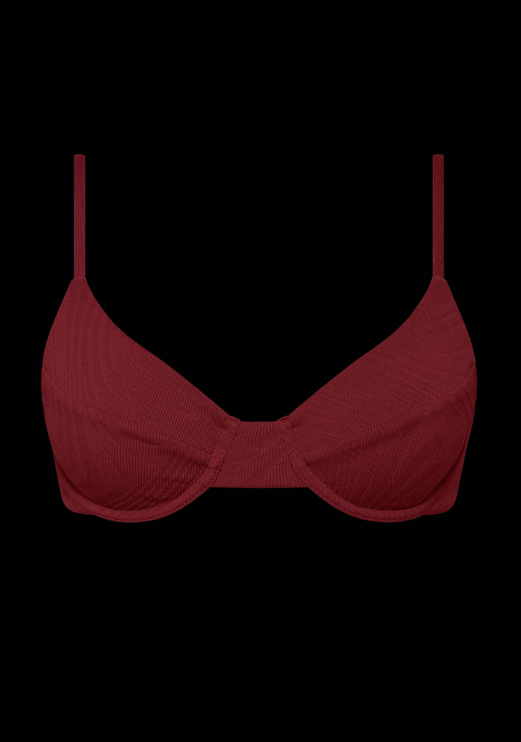 A contoured, underwire bra top Adjustable shoulder straps and back clasp.