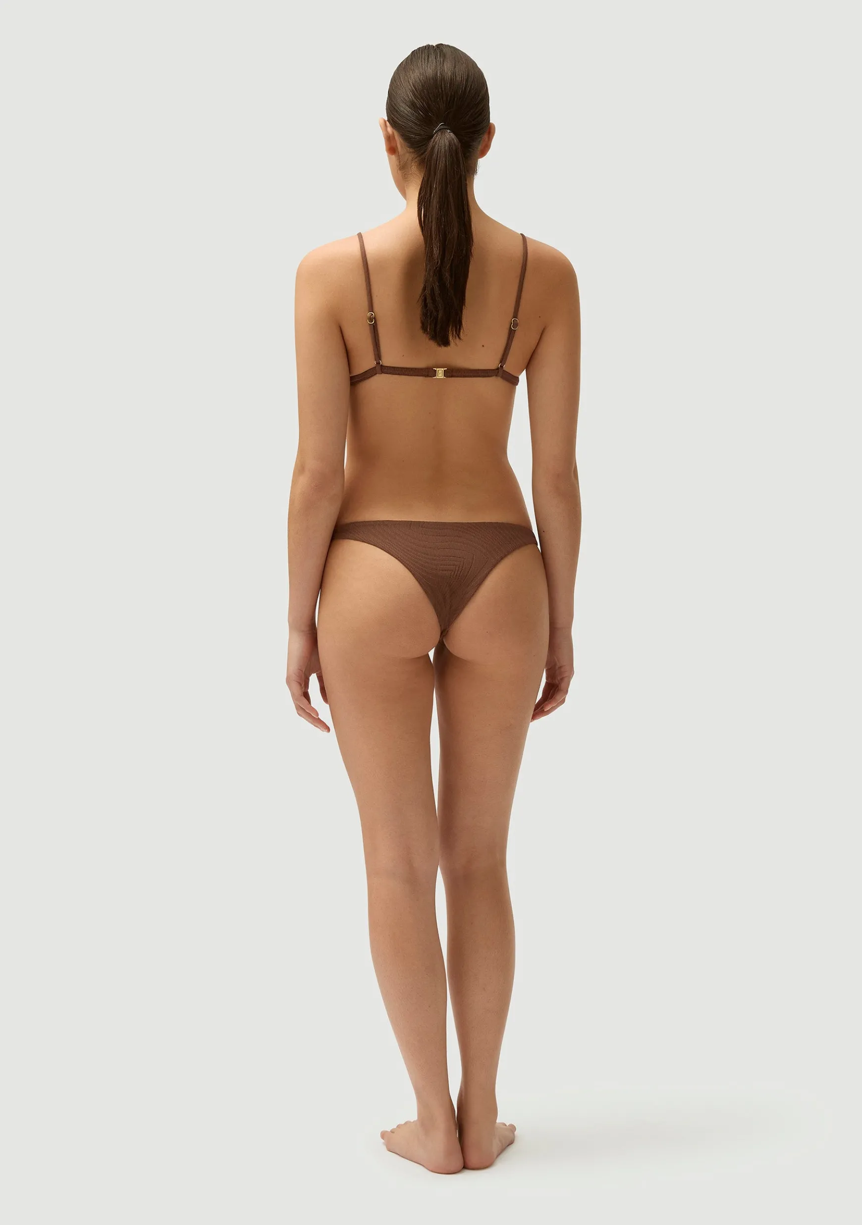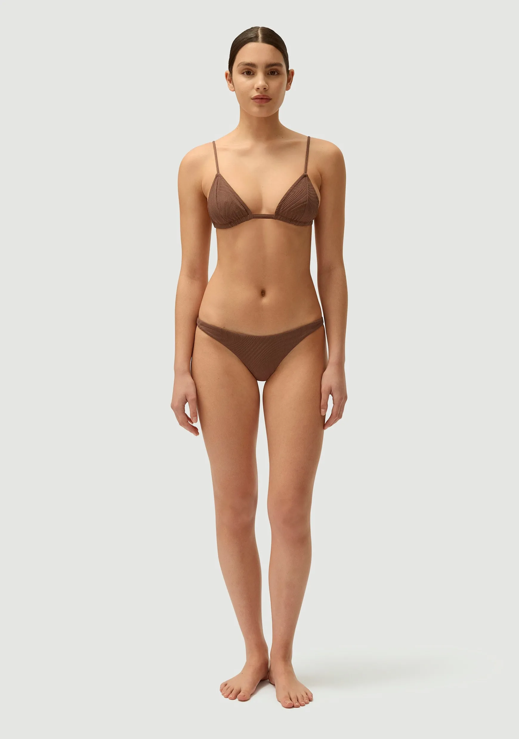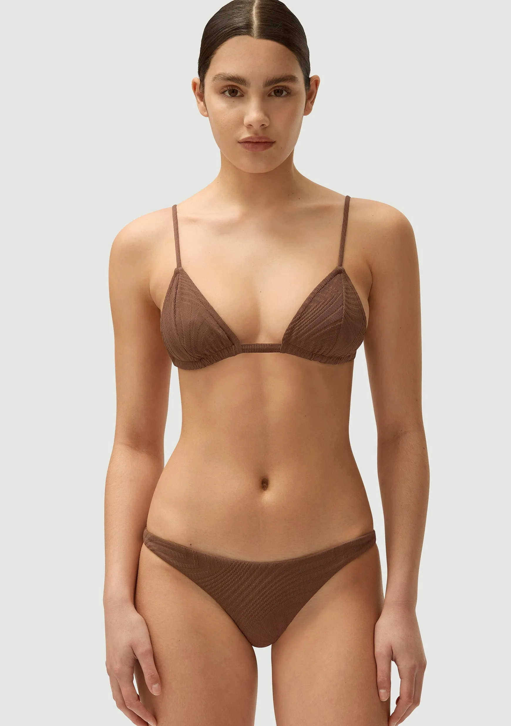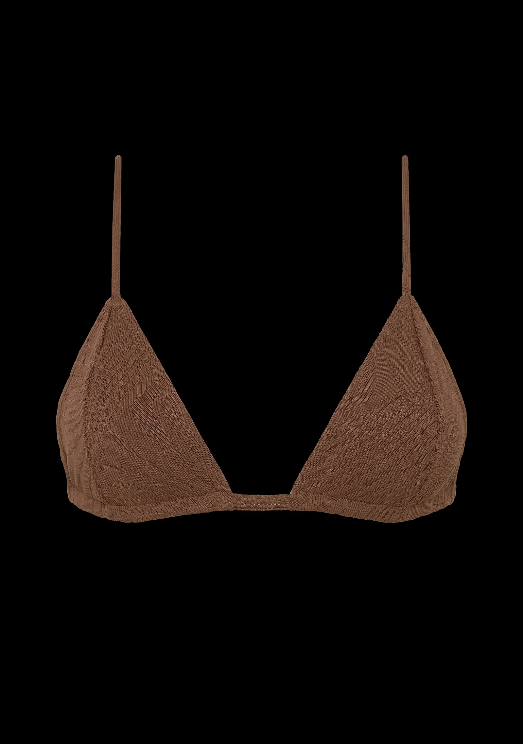 Tailored triangle bikini. Adjustable straps with back clasp.