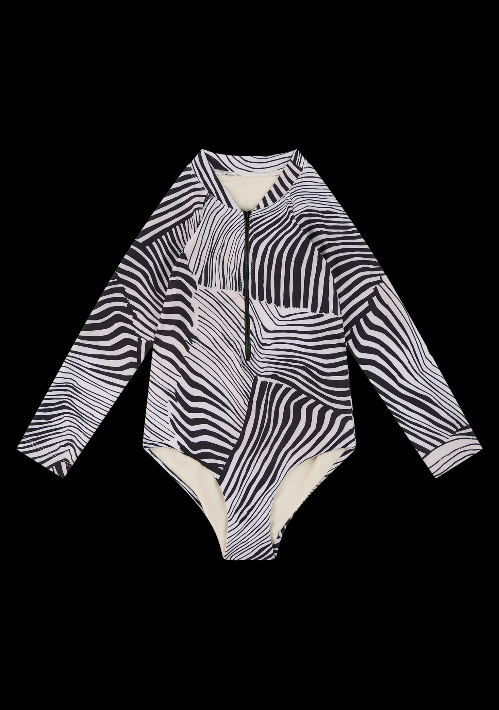 This adorable one-piece swimsuit is perfect for a playful beach day. Crafted from eco cloud Lycra and finished with charming ruffle details.