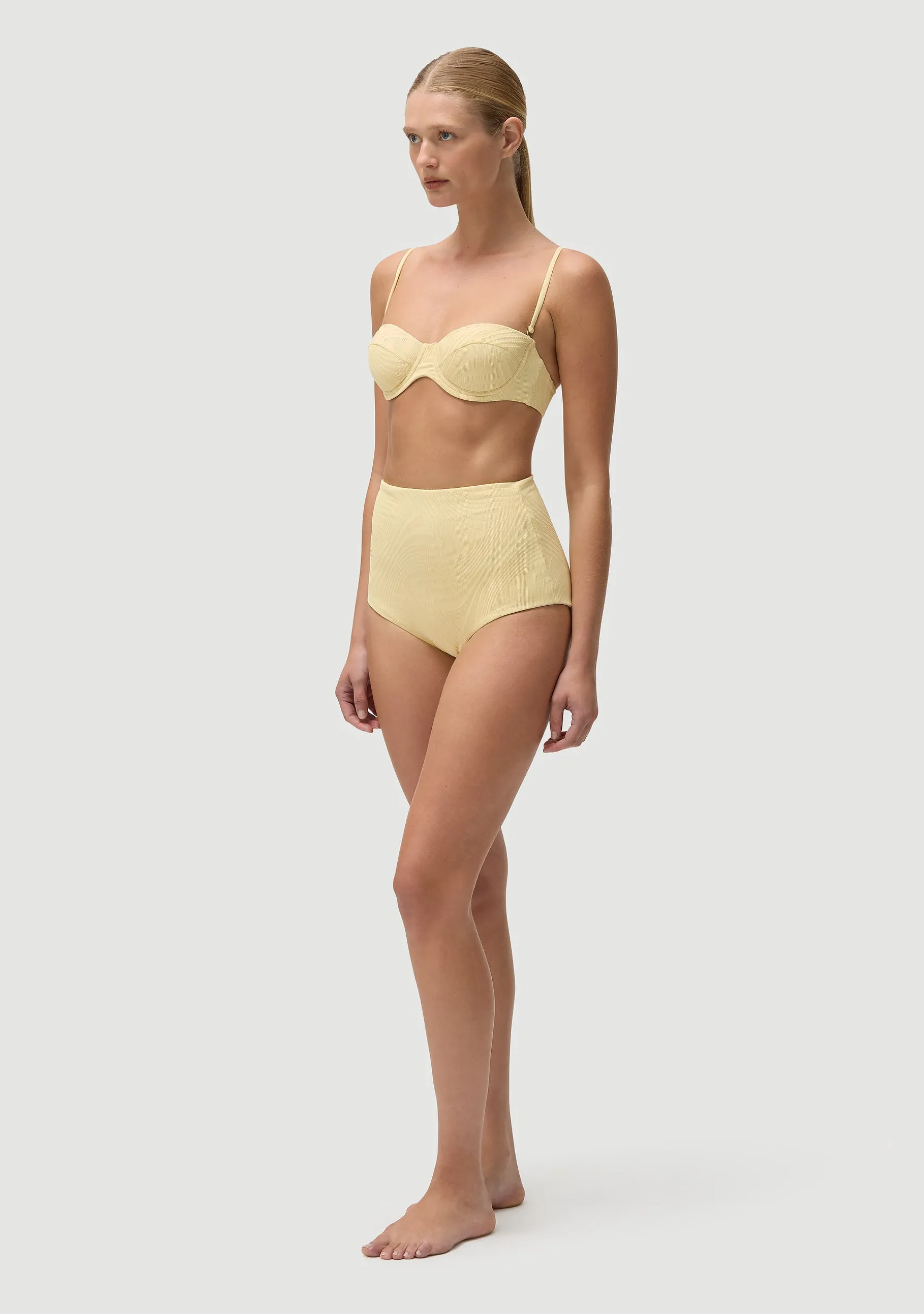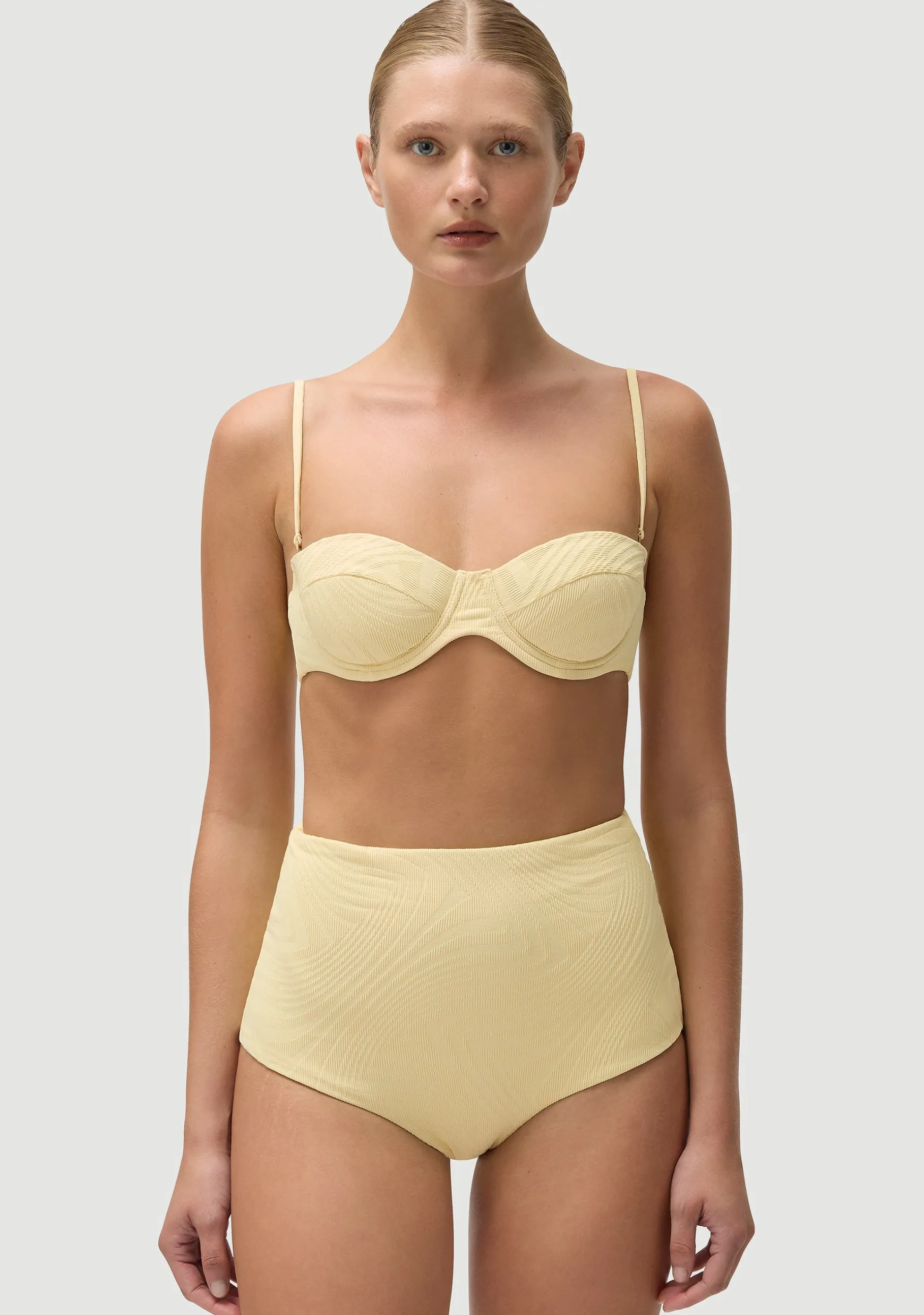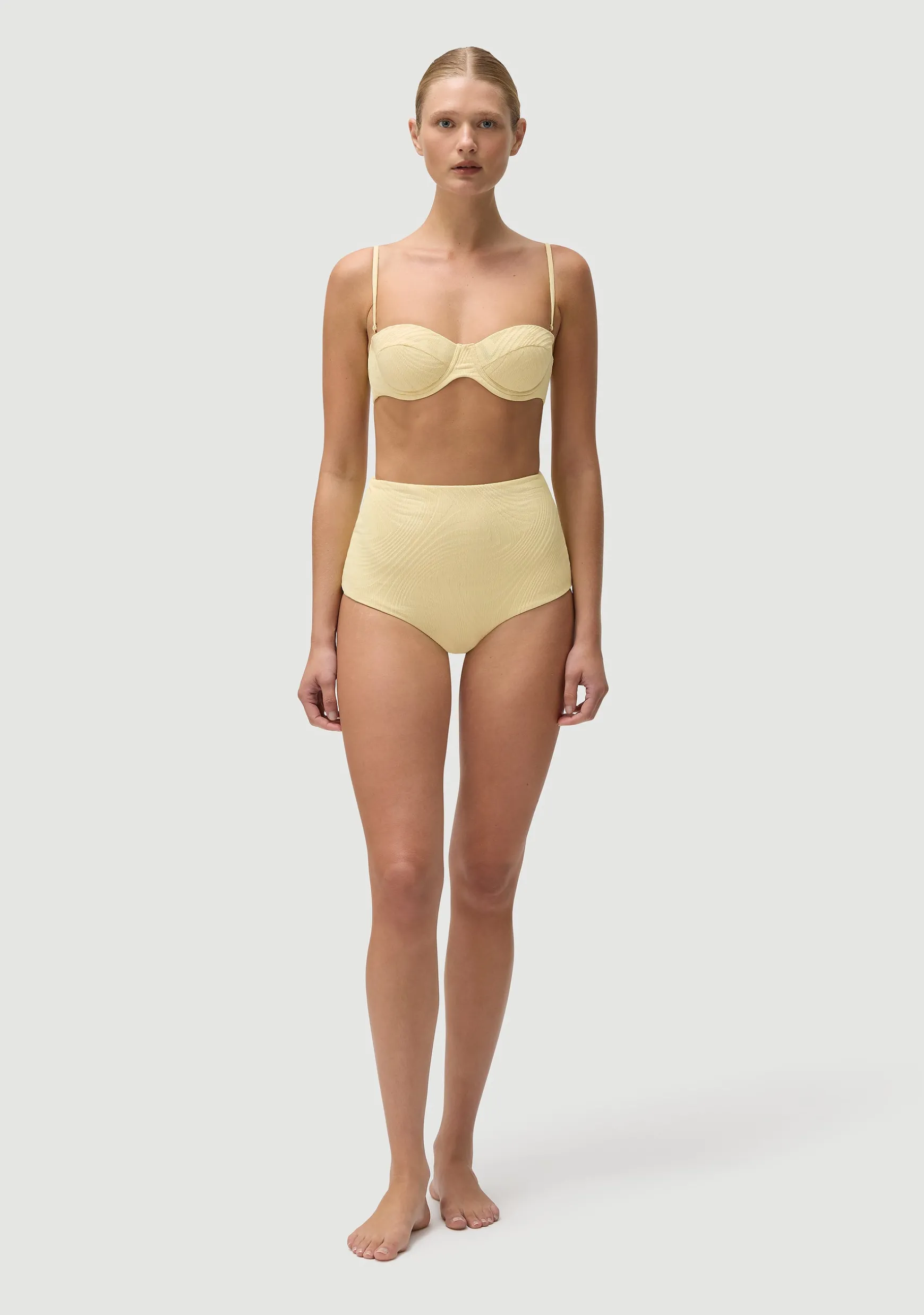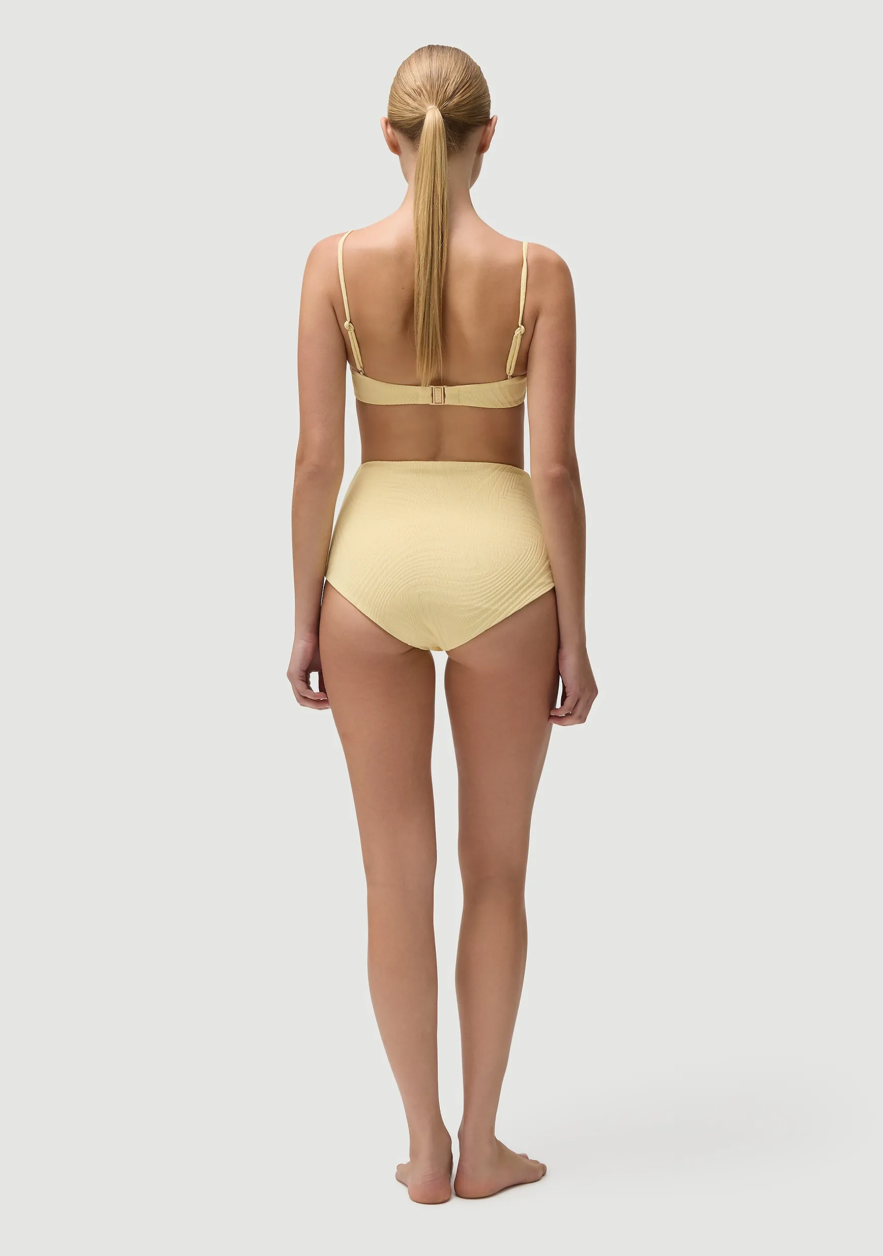 Classic high waisted bottom. A flattering style that contours the hips, stomach and waistline. Conservative cut. Fully lined.