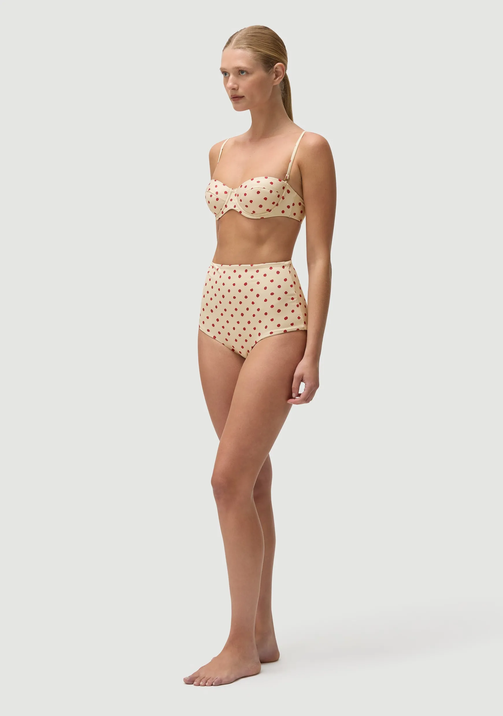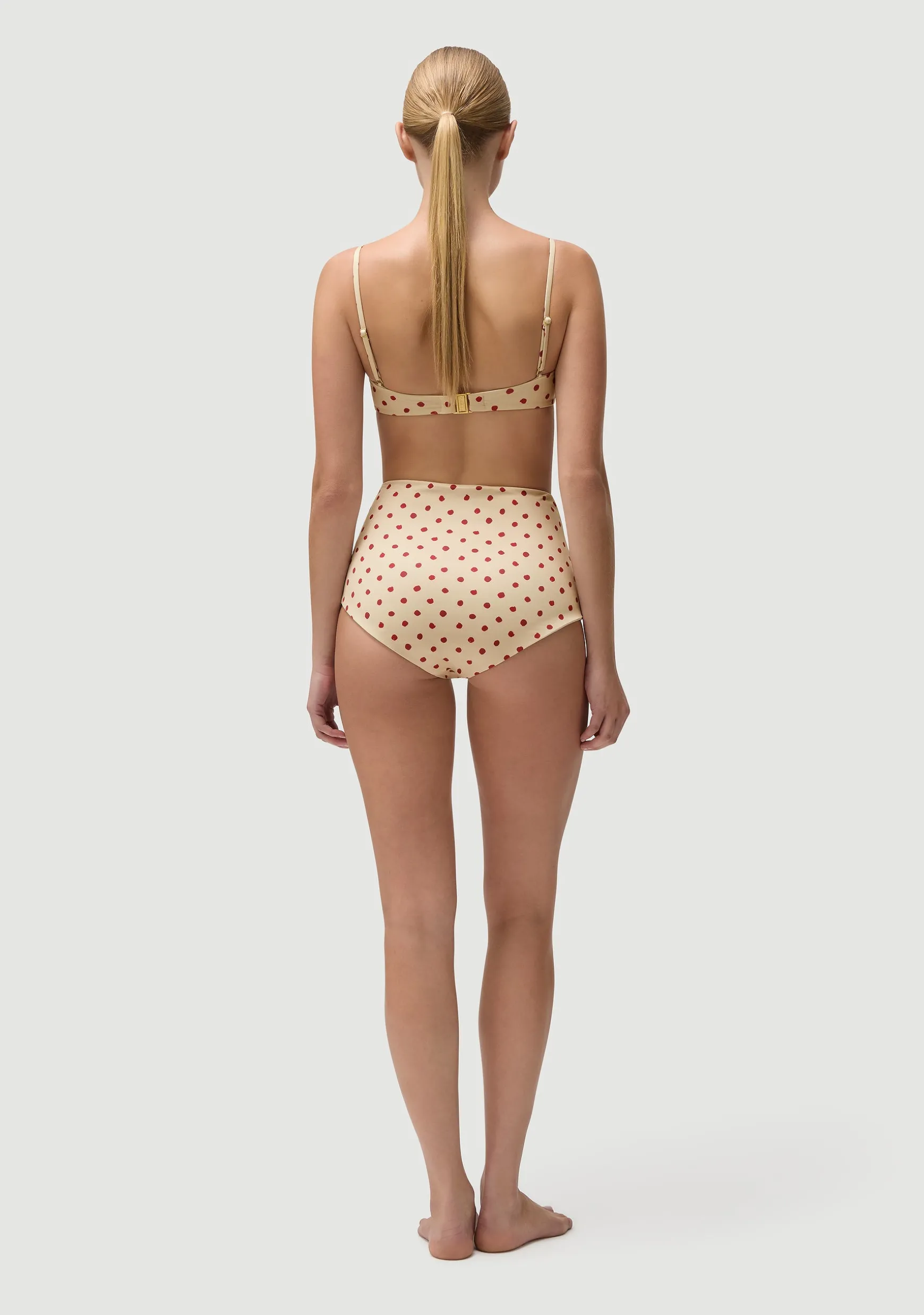 Classic high waisted bottom. A flattering style that contours the hips, stomach and waistline. Conservative cut. Fully lined.