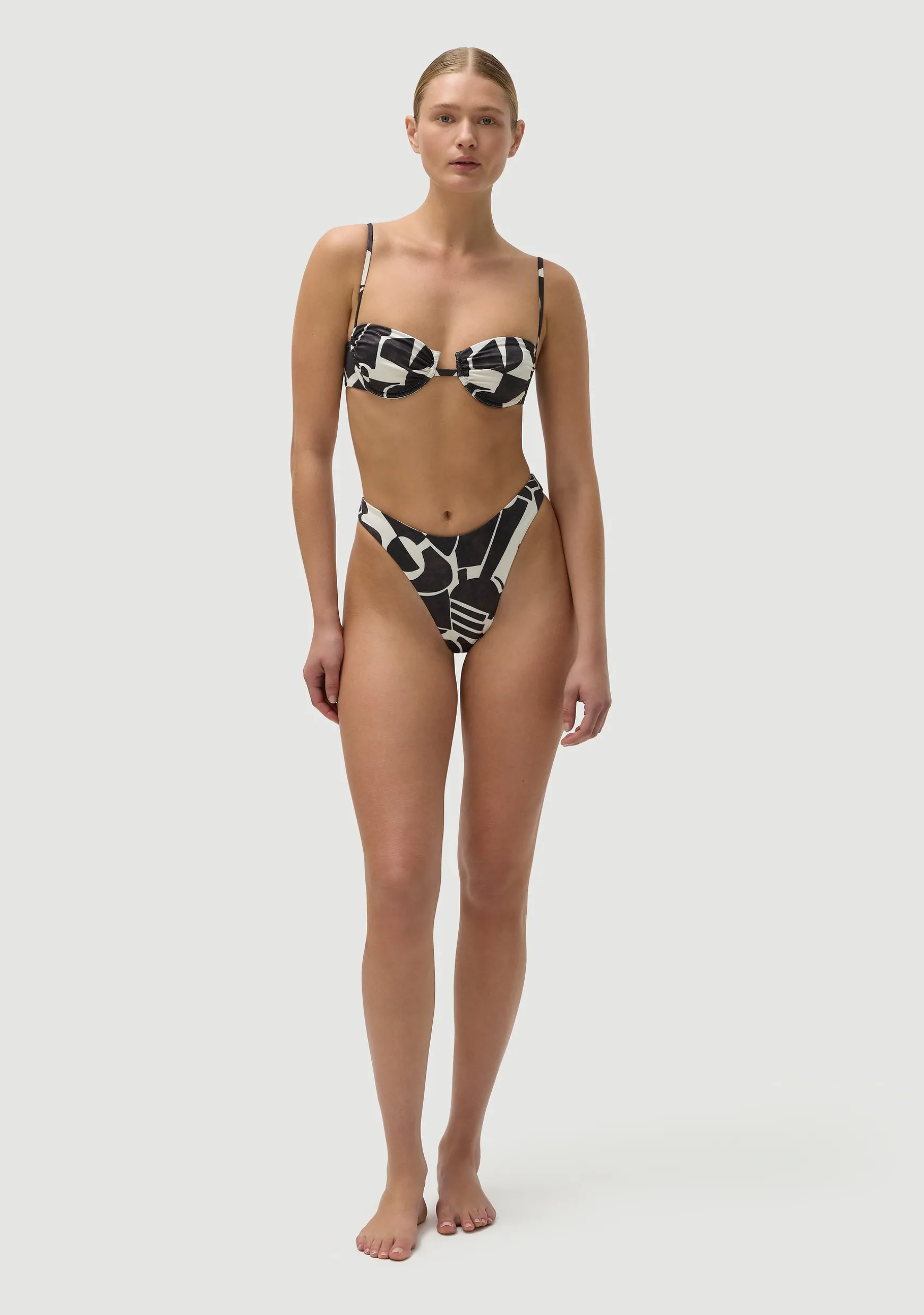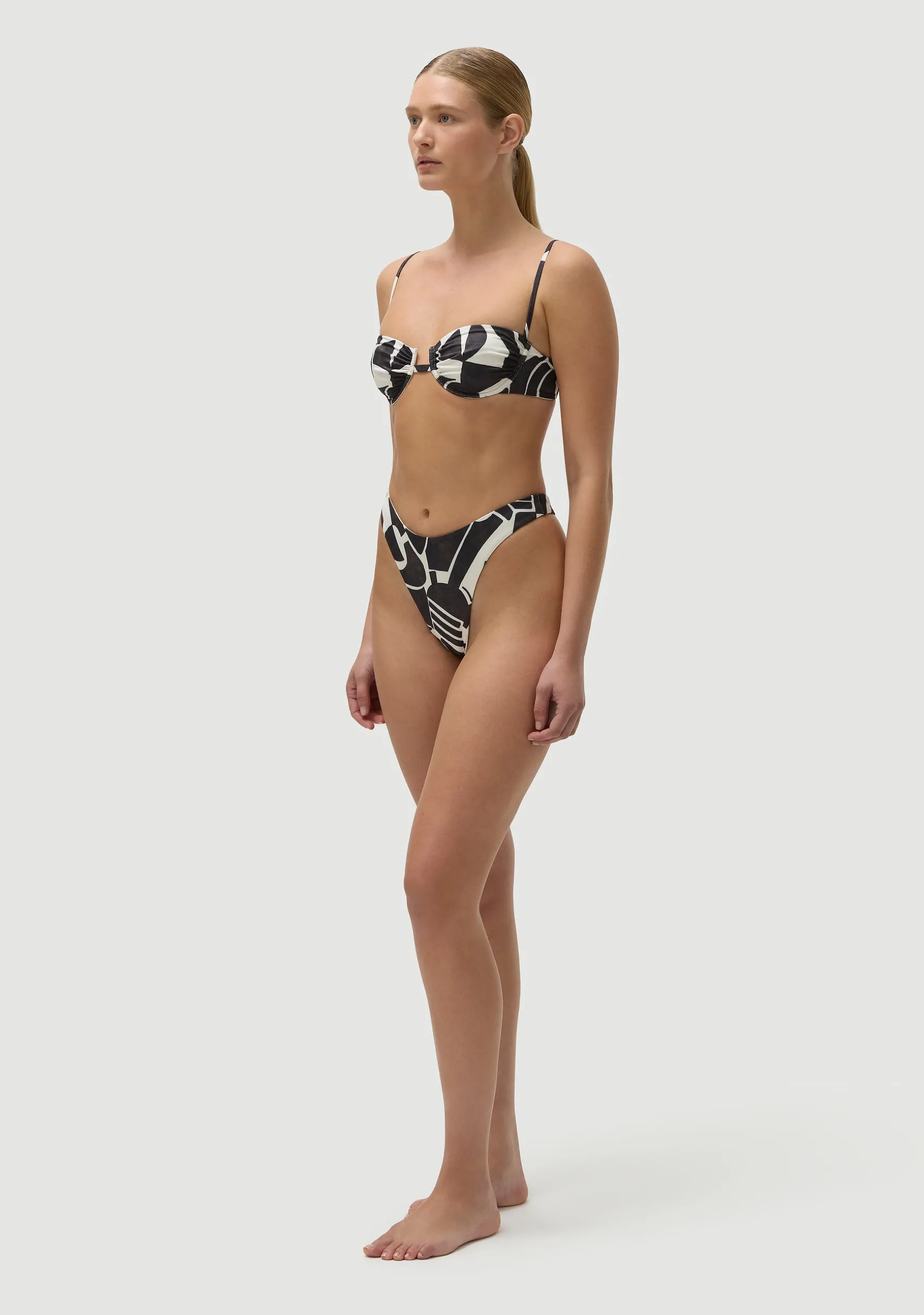 High-cut 90s classic thong. Elongates the legs and draws in the waist