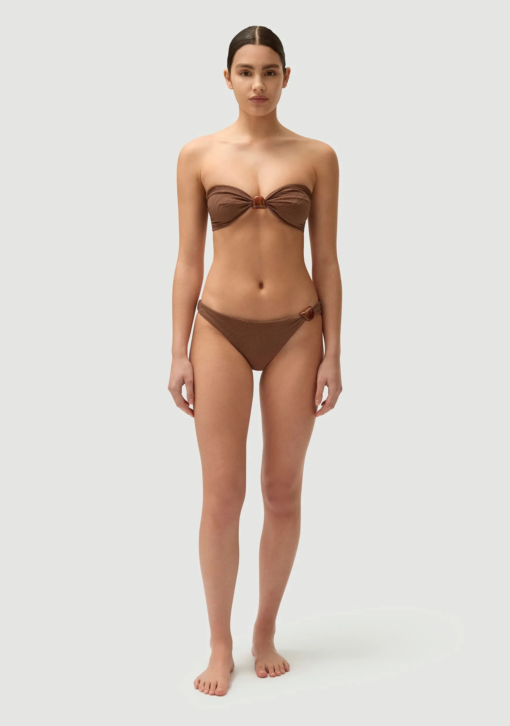 Classic bikini bottom with a single-sided Italian plexiglass bead.