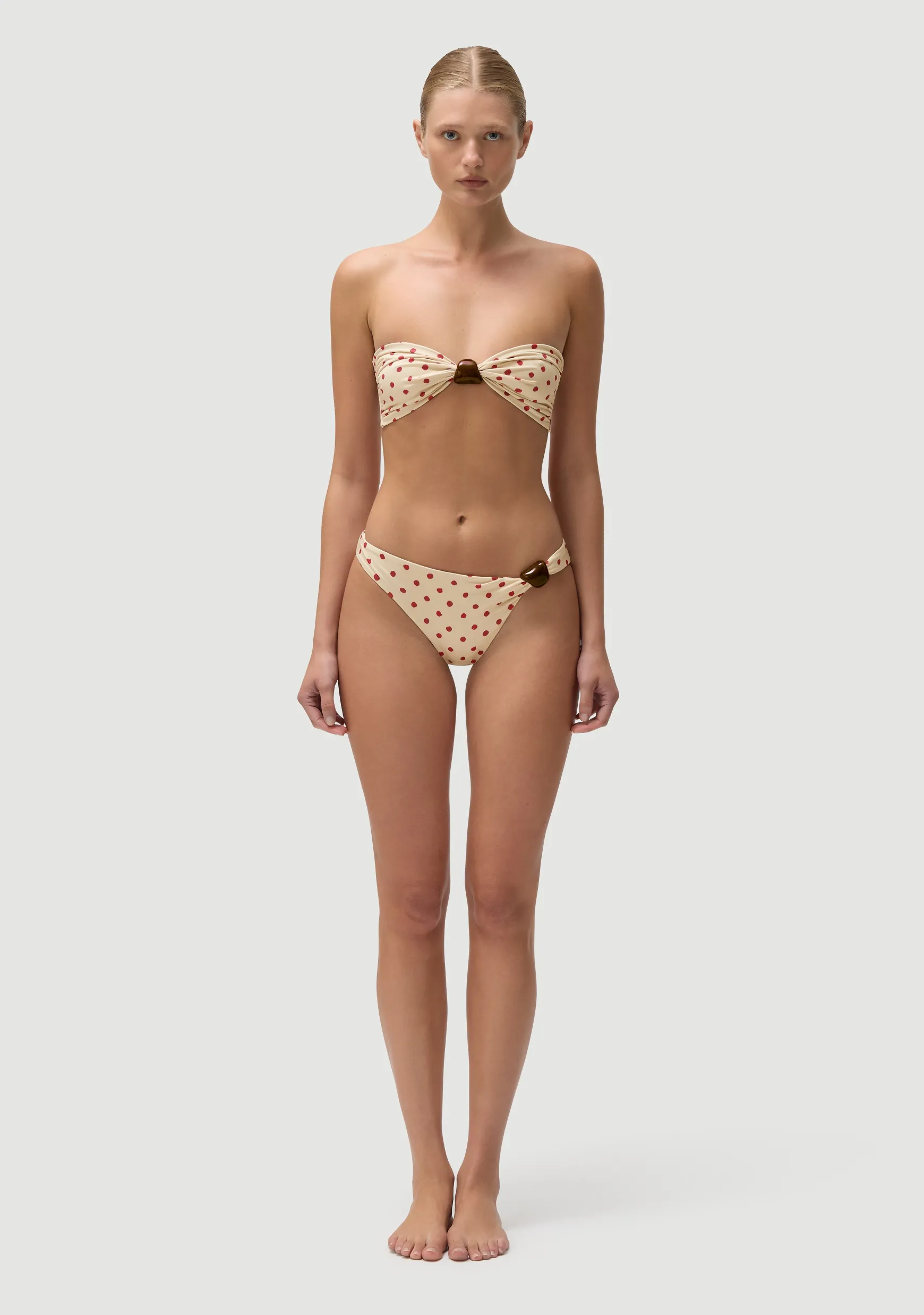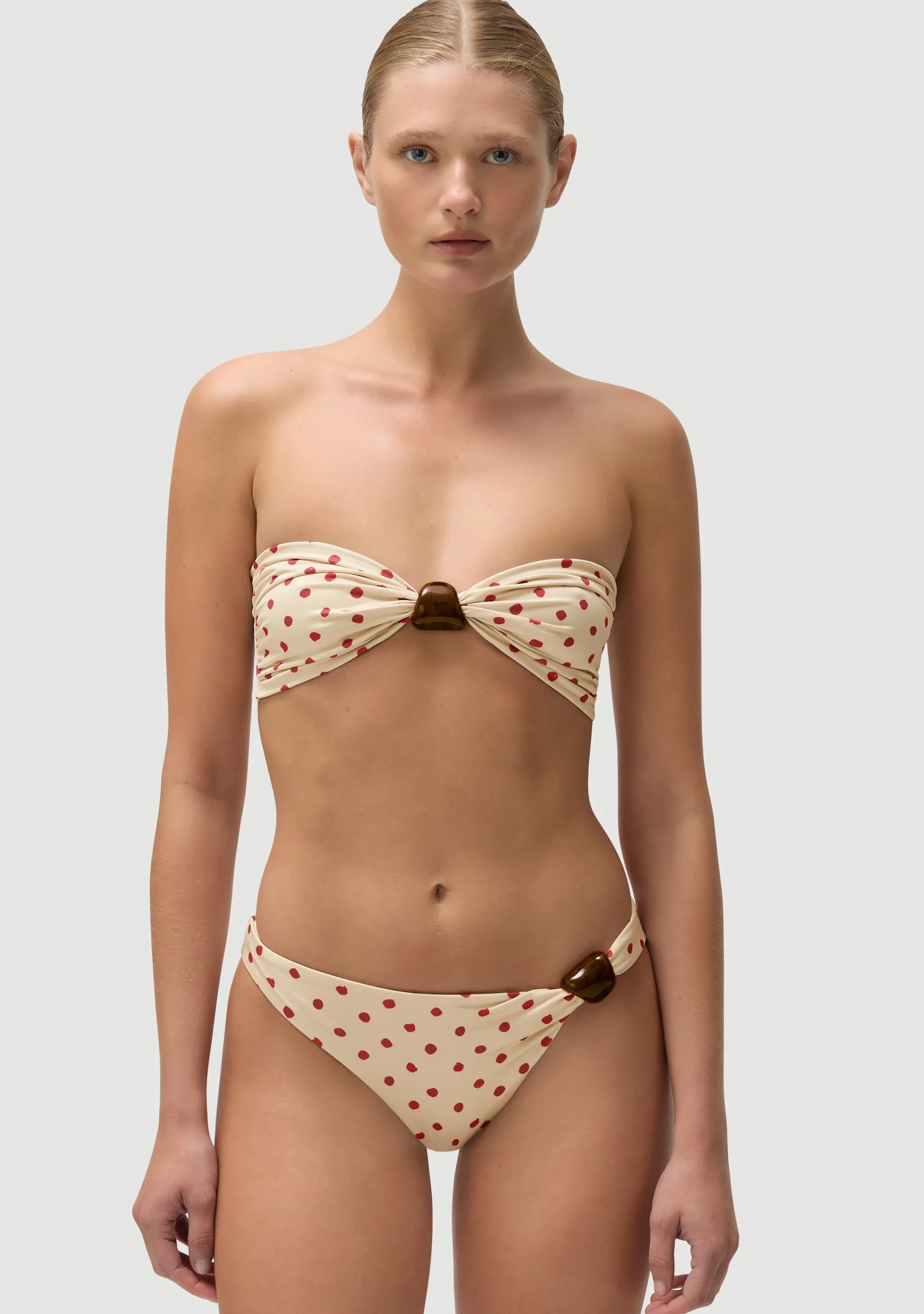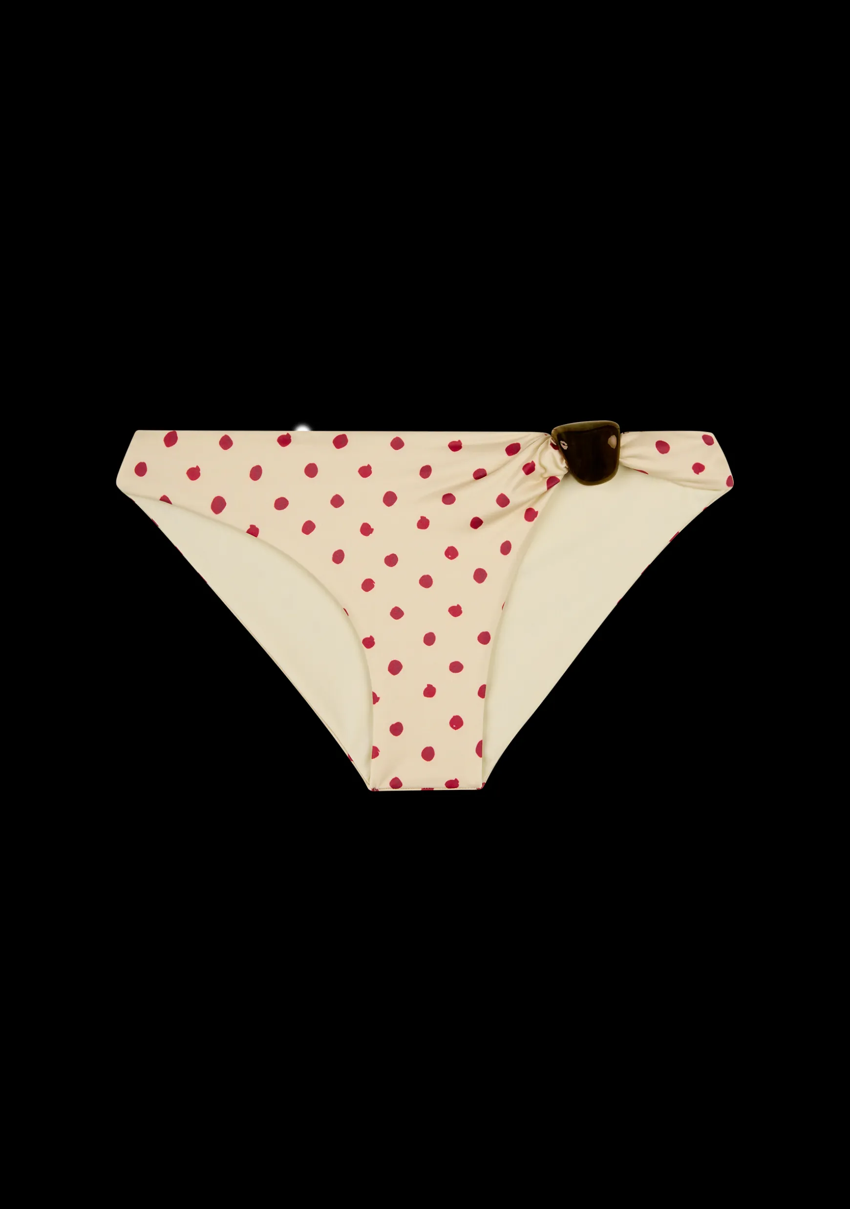 Classic bikini bottom with a single-sided Italian plexiglass bead. Low rise