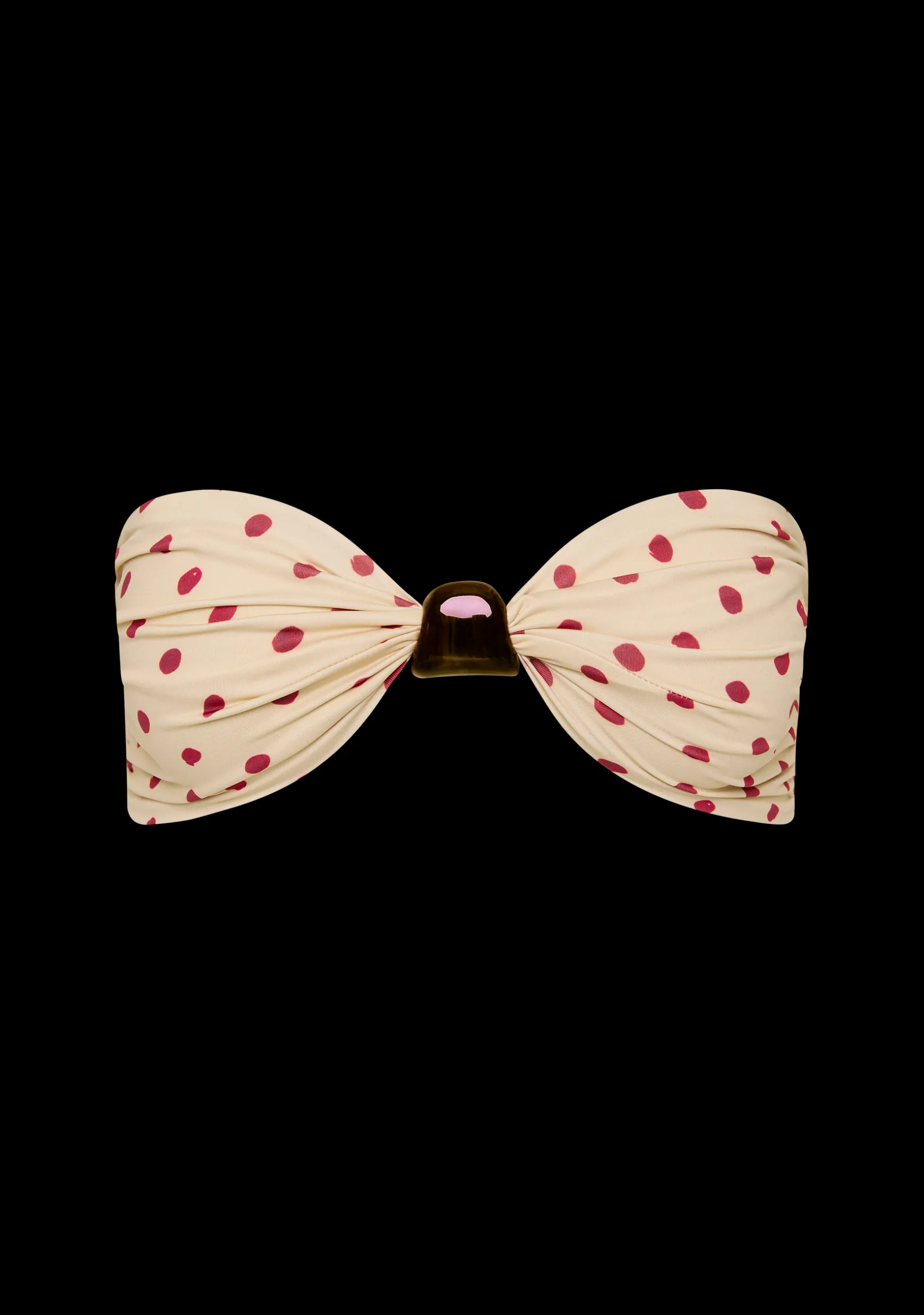 Bandeau top with a chunky Italian plexiglass bead. Clasp at back, Boned side seams.