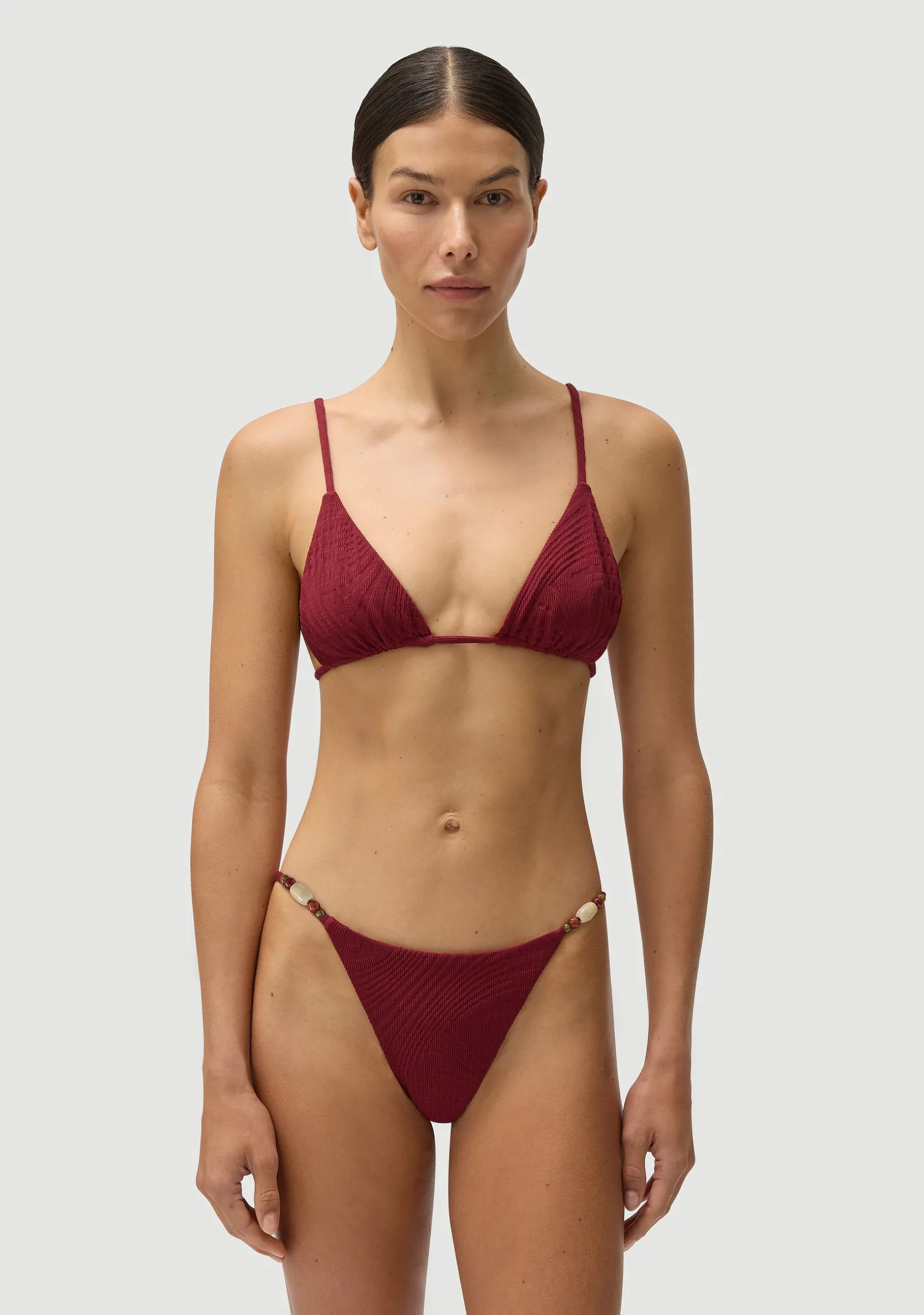 Classic tanning bottom with Italian plexiglass beads. Mid-rise.