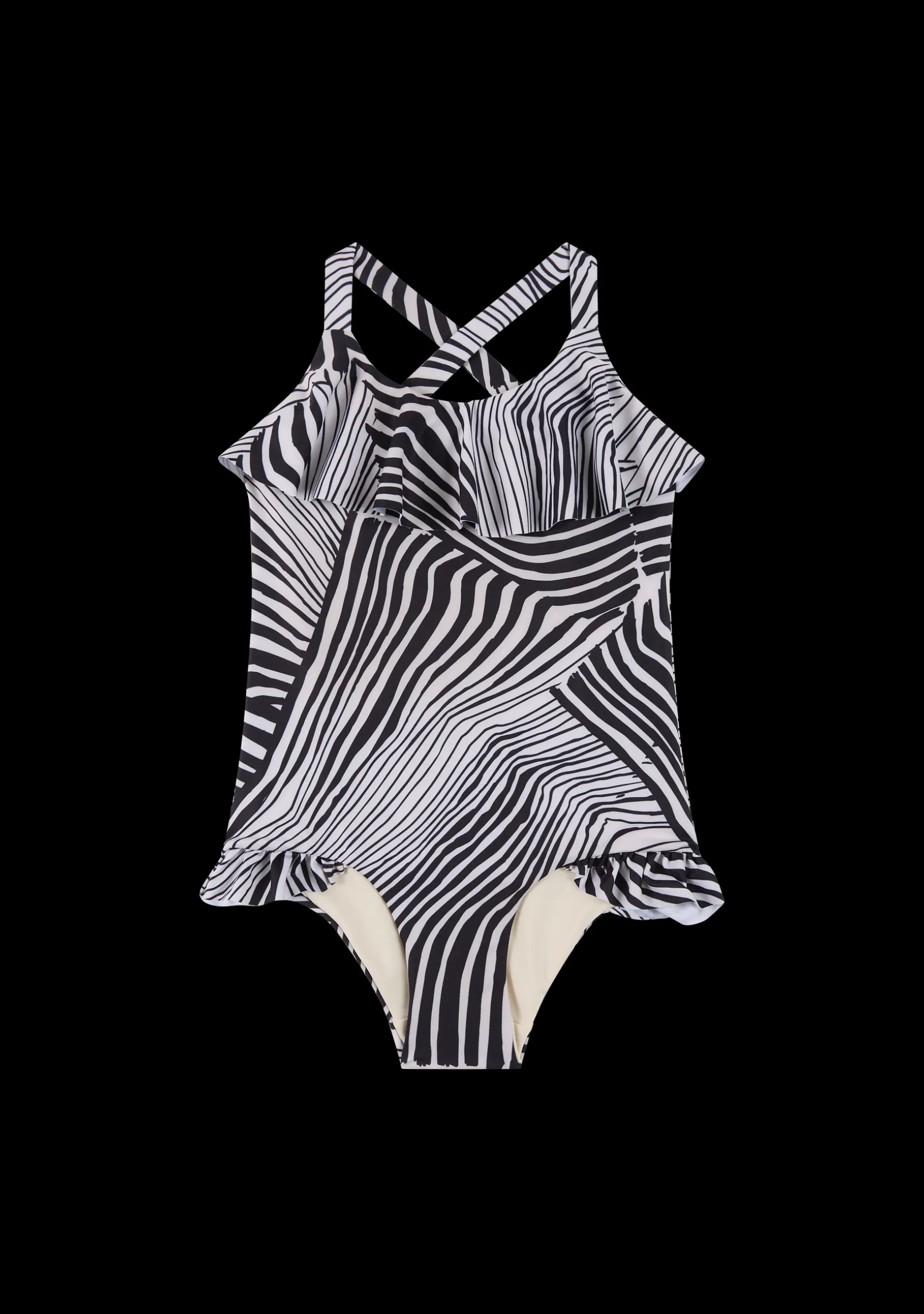This adorable one-piece swimsuit is perfect for a playful beach day. Crafted from eco cloud Lycra and finished with charming ruffle details.
