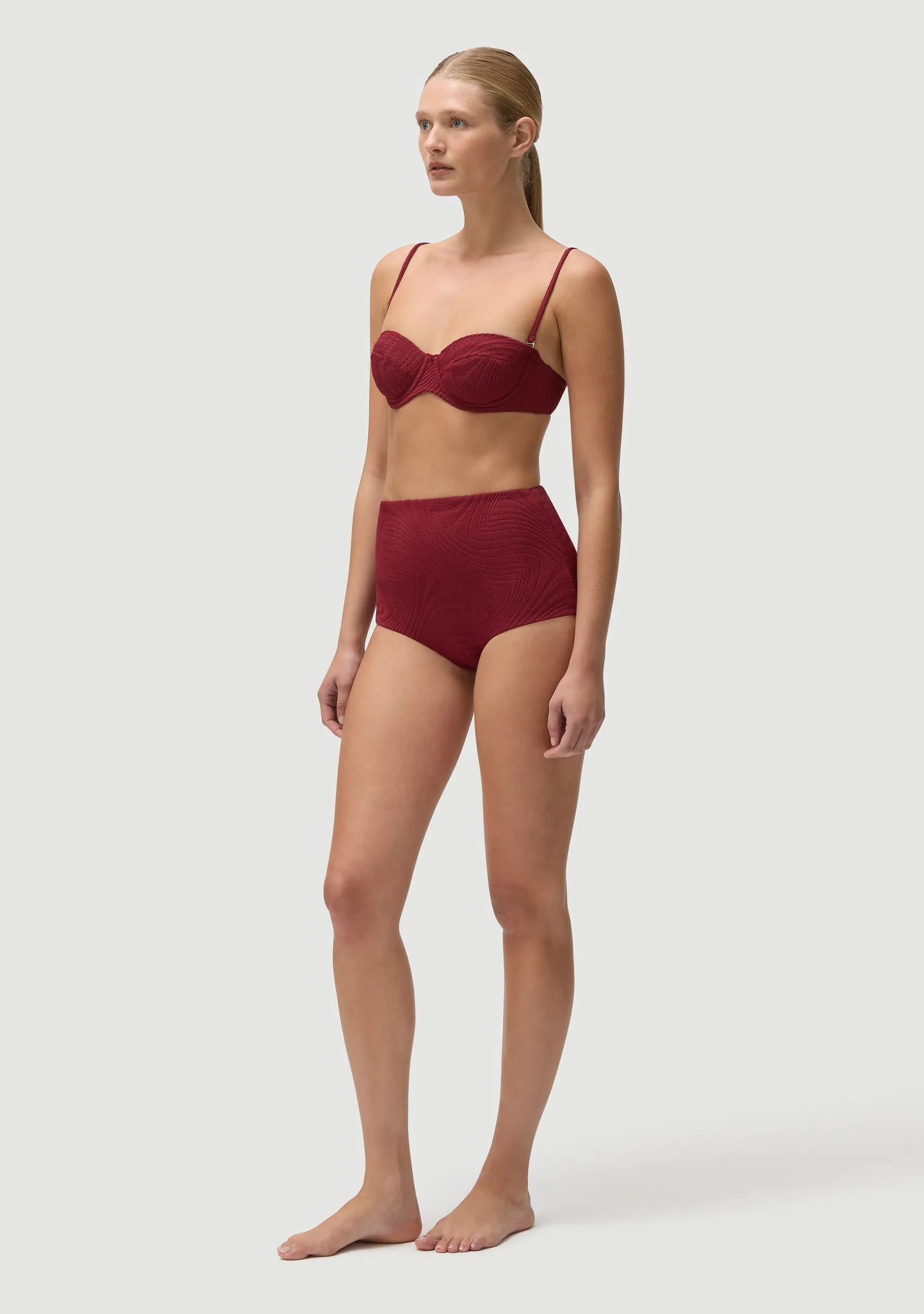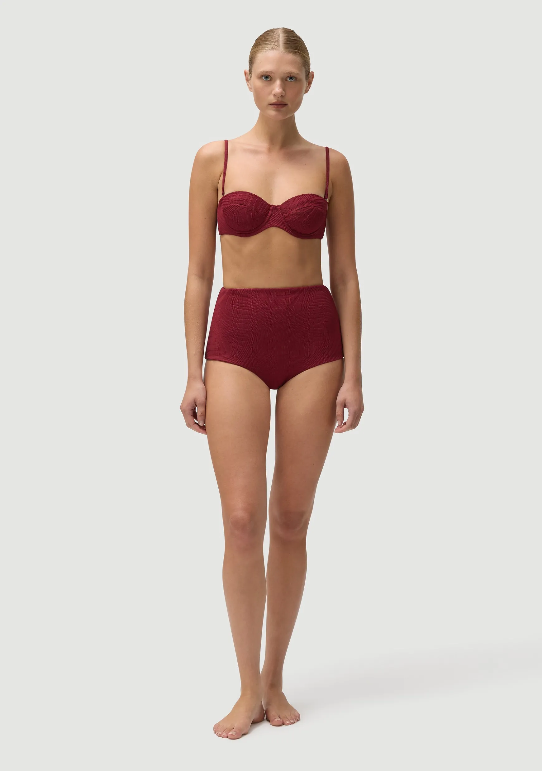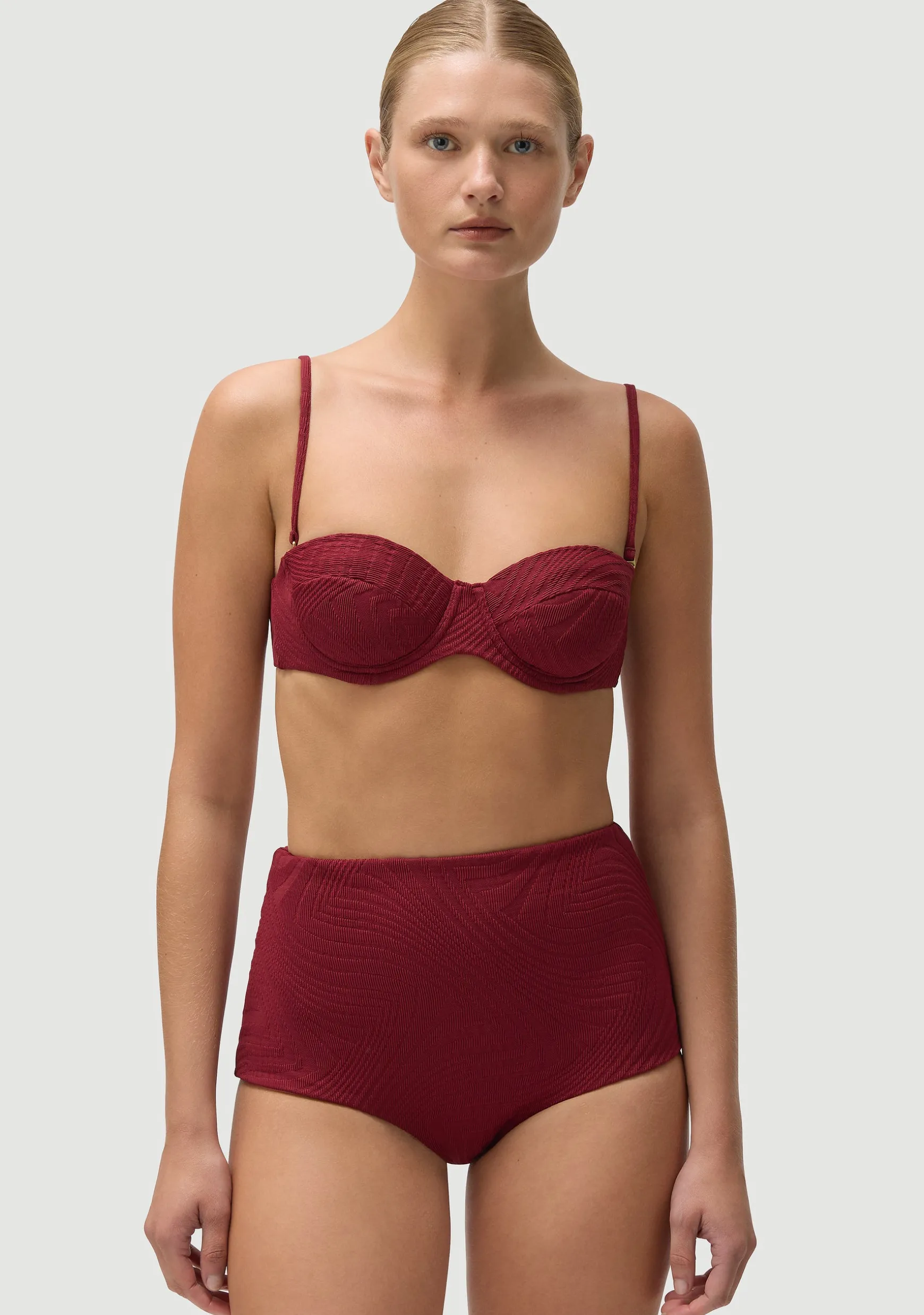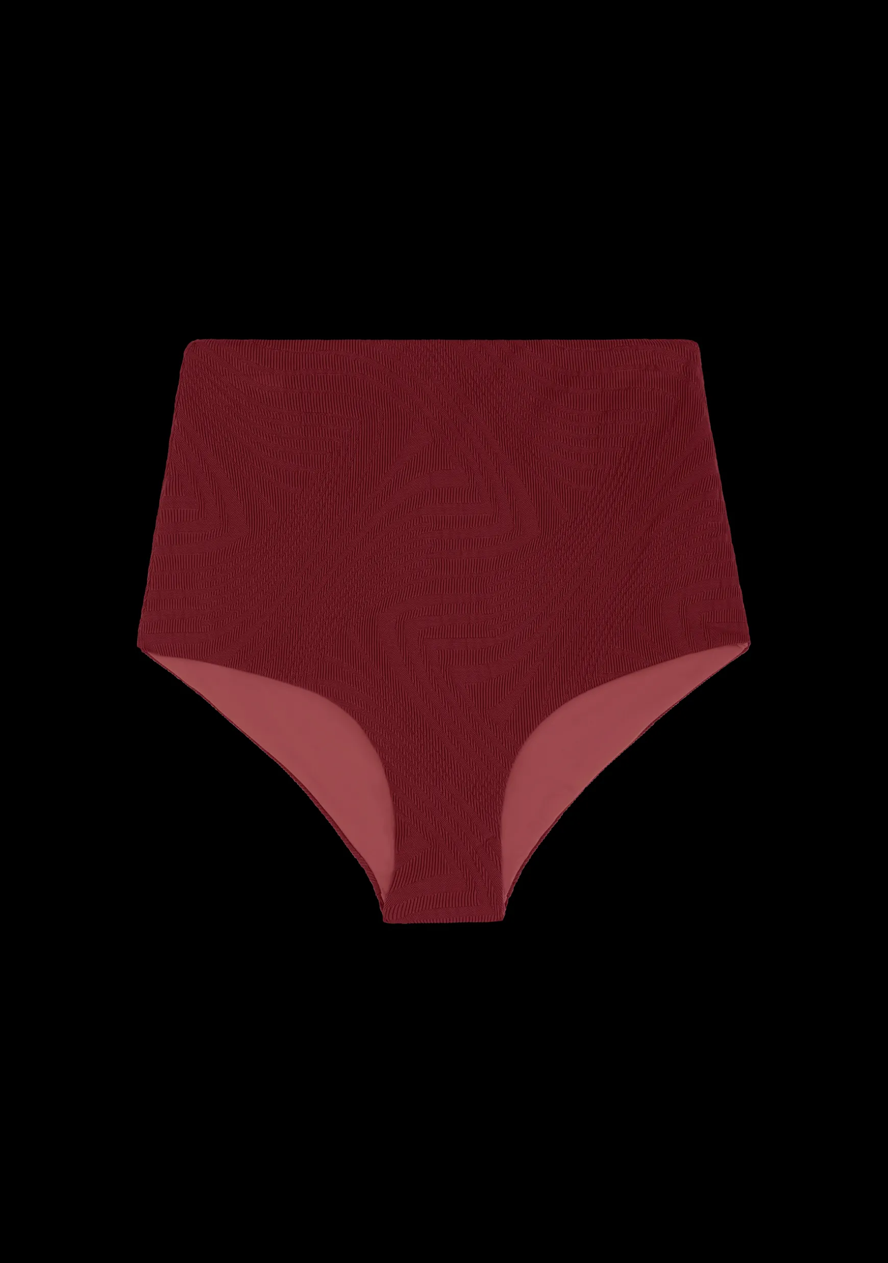 Classic high waisted bottom. A flattering style that contours the hips, stomach and waistline. Conservative cut. Fully lined.